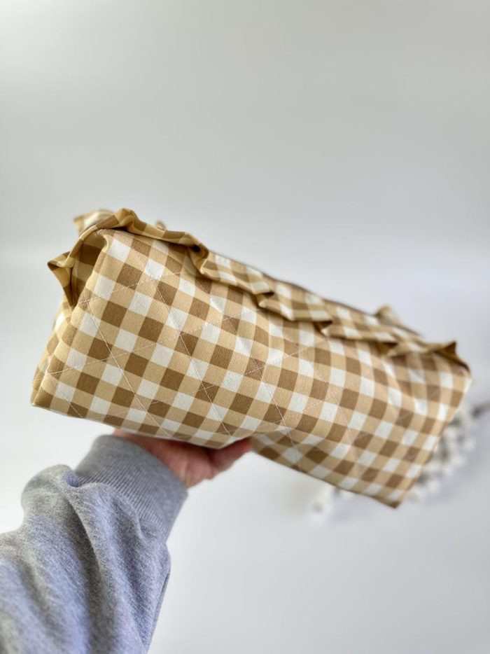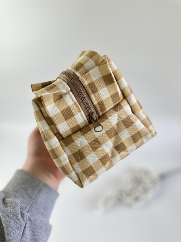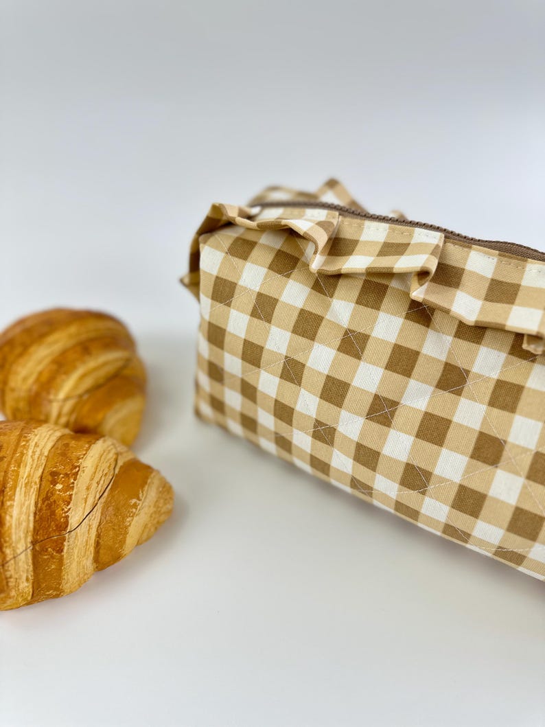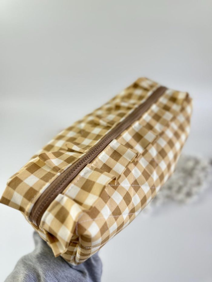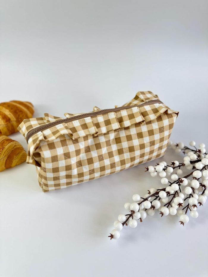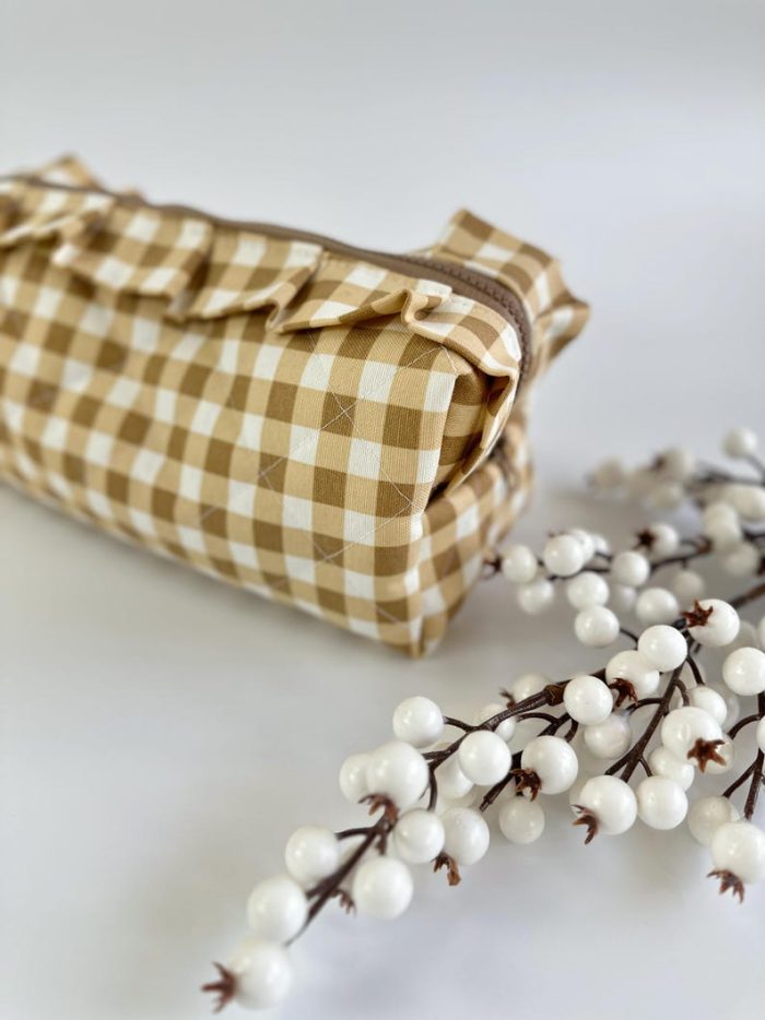 Home Bộ sưu tập Hot Túi mỹ phẩm caro cotton bèo nhún