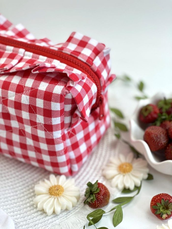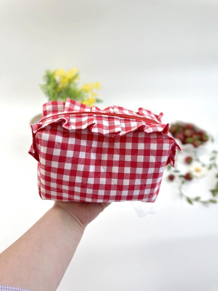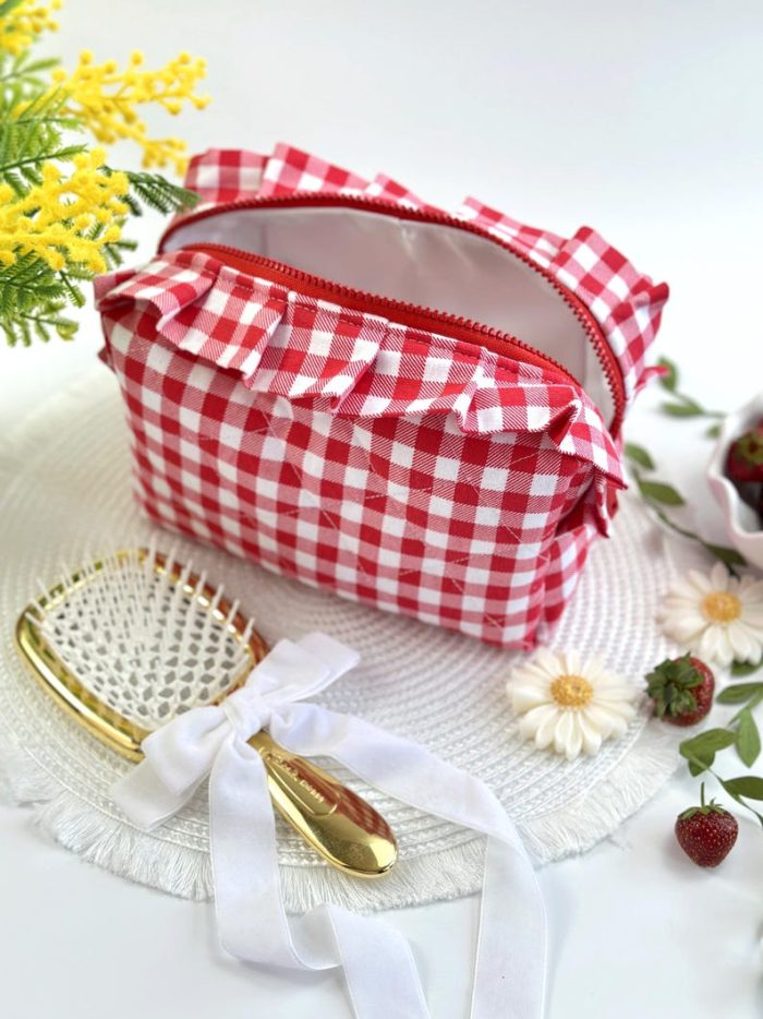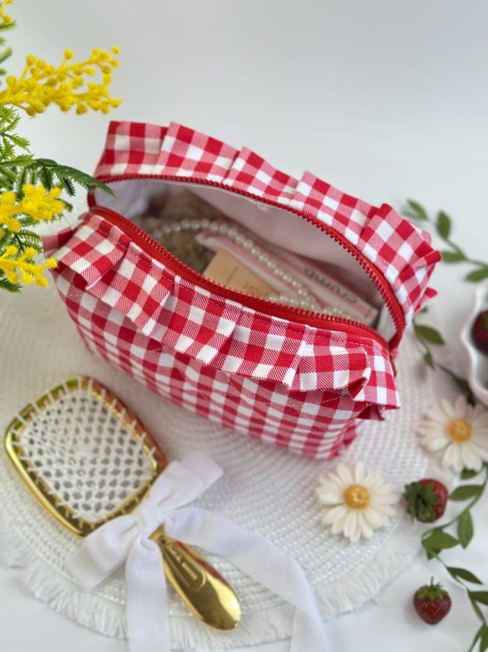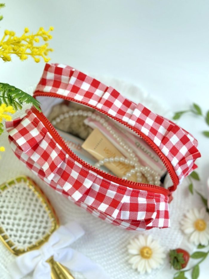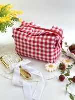 Home Bộ sưu tập Hot Túi mỹ phẩm caro đỏ lót satin