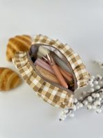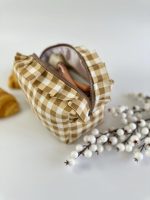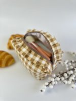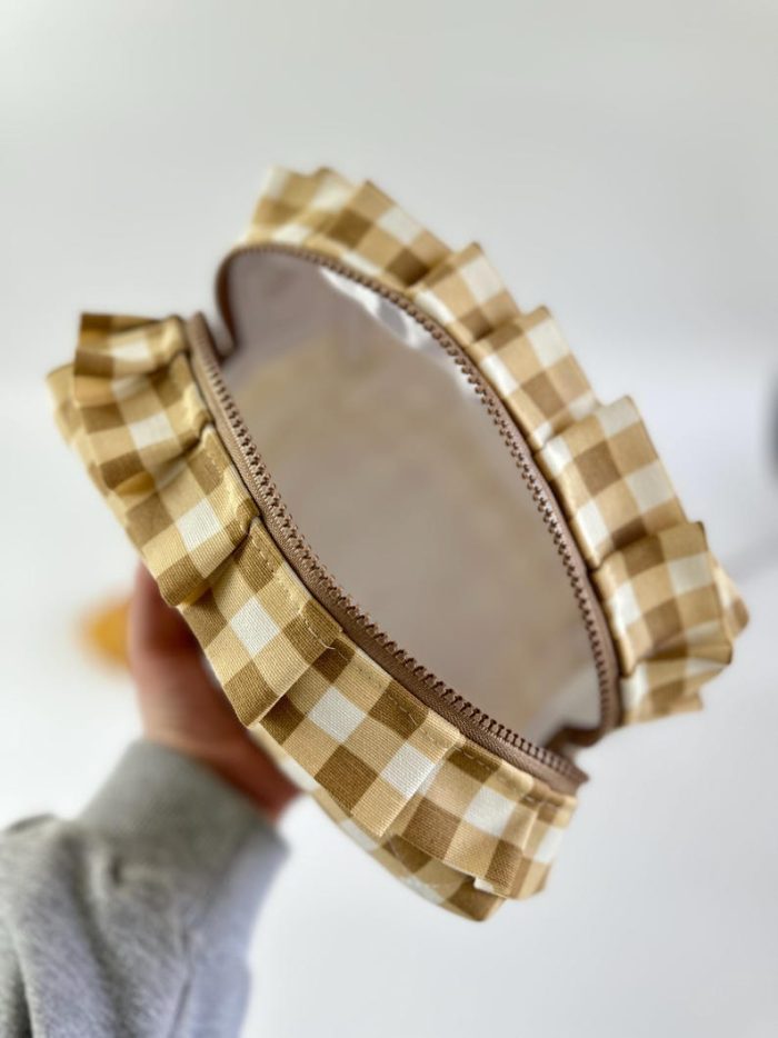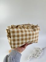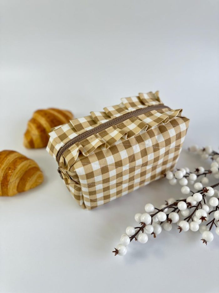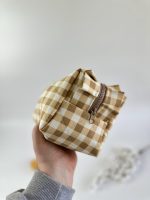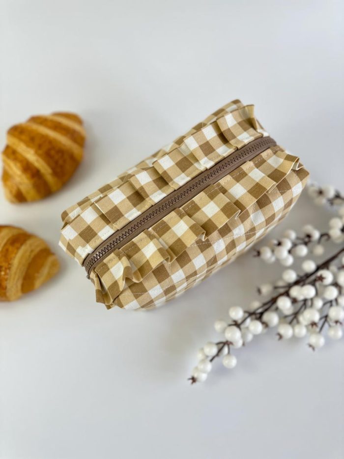 Home Bộ sưu tập Hot Túi mỹ phẩm cotton caro nâu bèo nhún