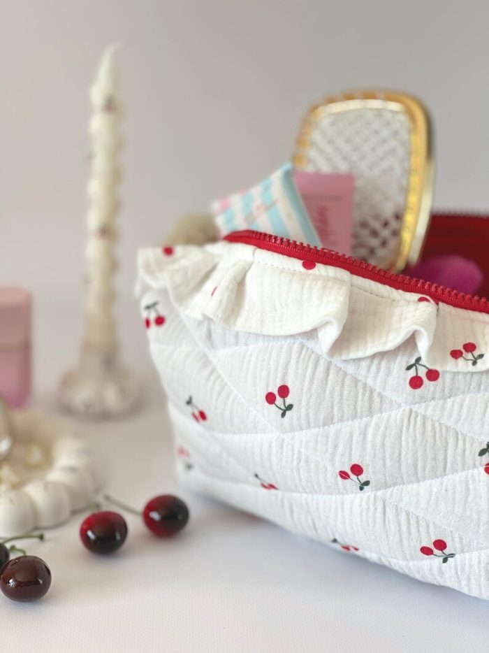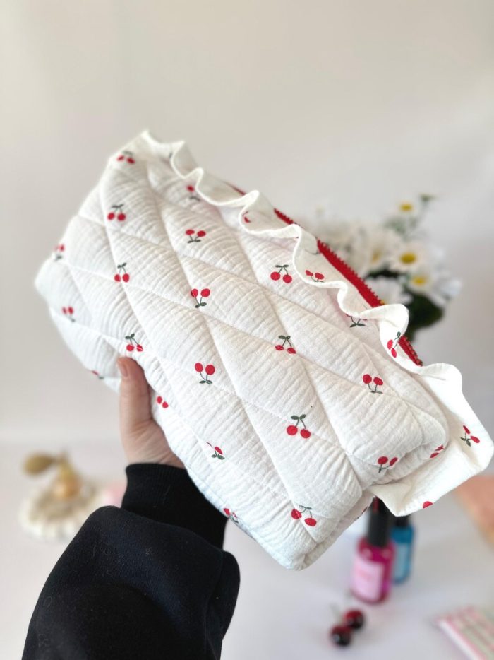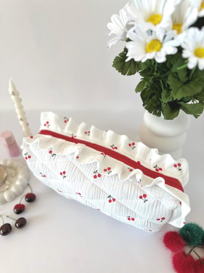 Home Bộ sưu tập Hot Túi mỹ phẩm cotton cherry bèo nhún