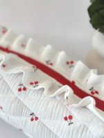 Màu sắc: Trắng họa tiết cherry, viền bèo, lót đỏ