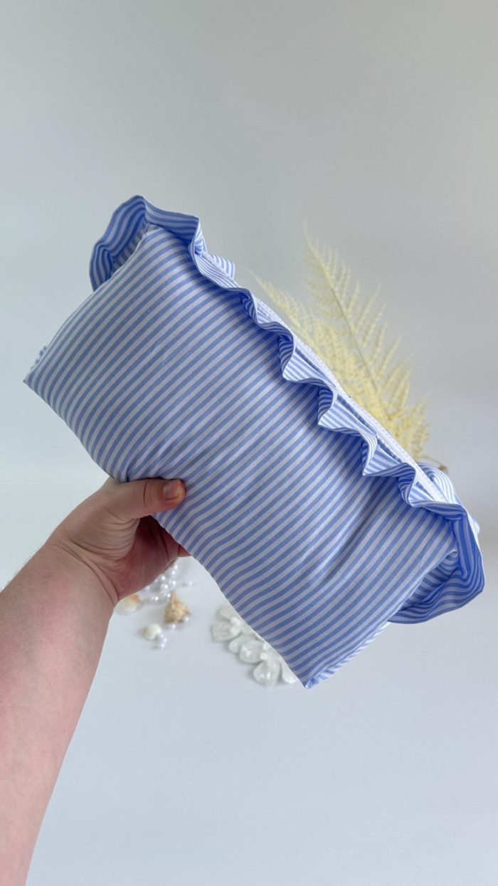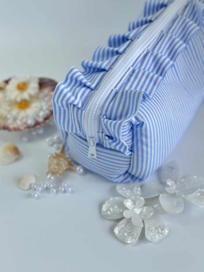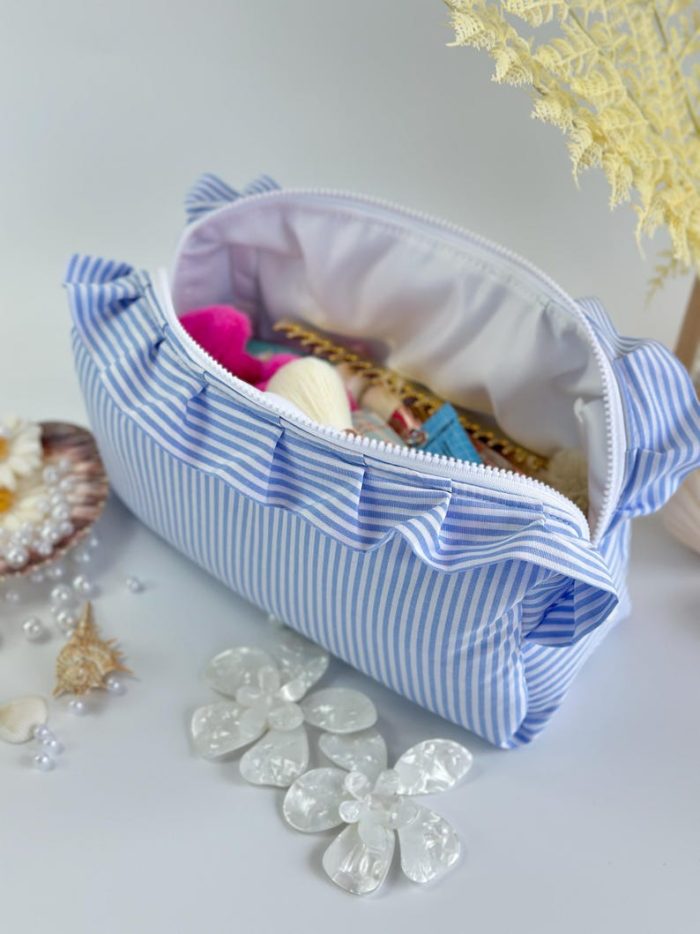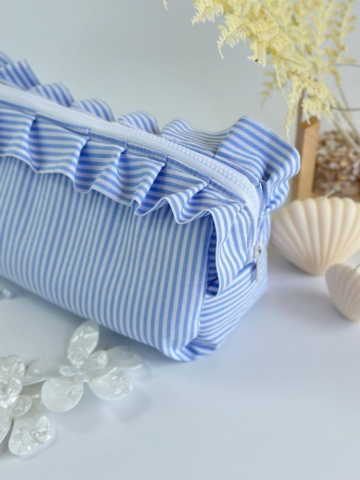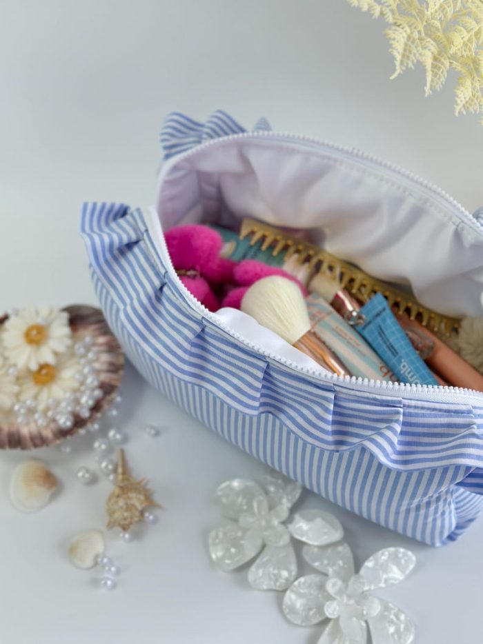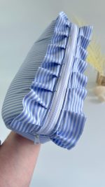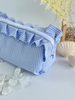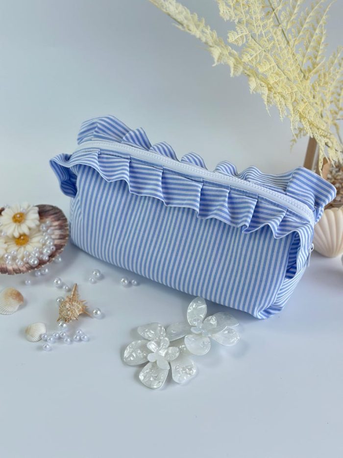 Home Bộ sưu tập Hot Túi mỹ phẩm cotton sọc xanh bèo nhún