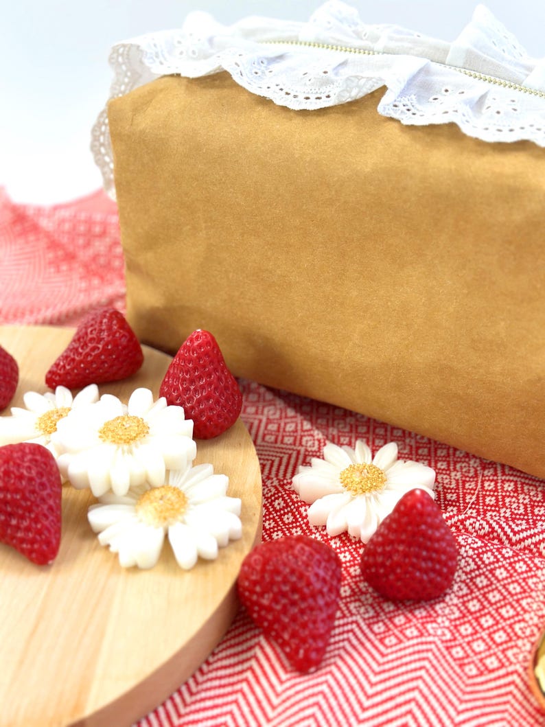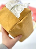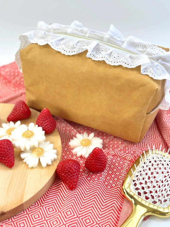 Home Bộ sưu tập Hot Túi mỹ phẩm giấy kraft bèo ren lót caro dâu