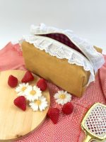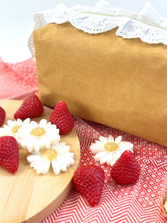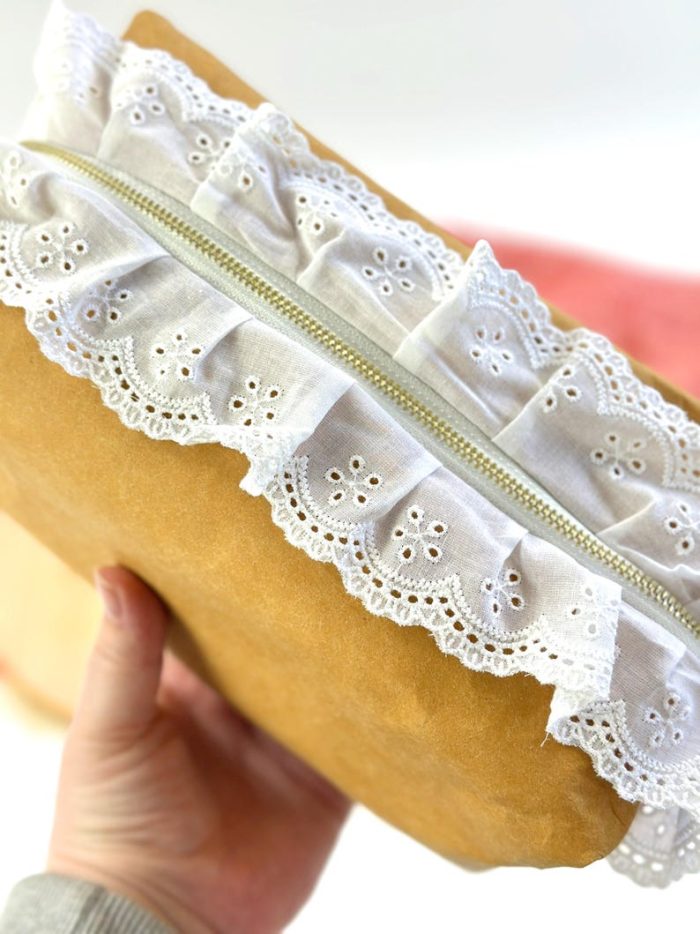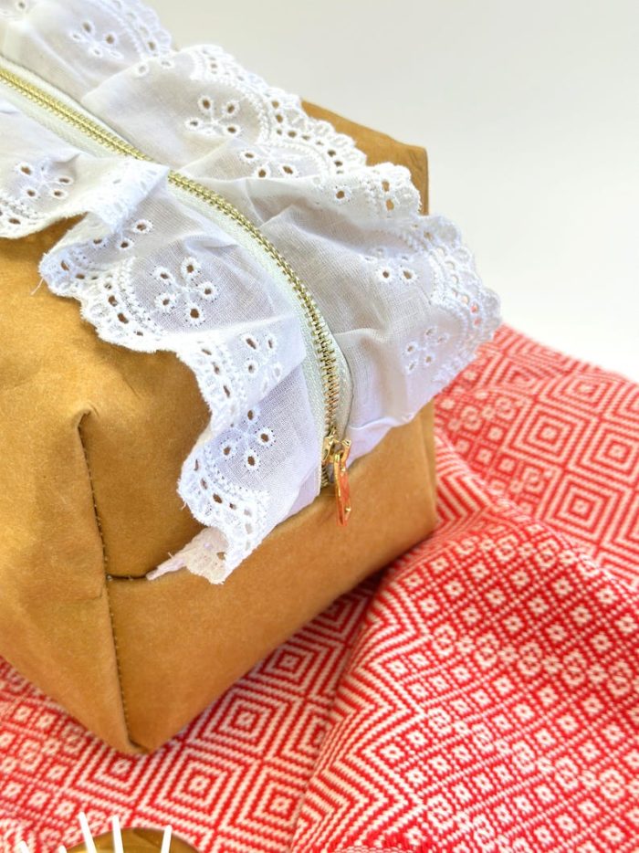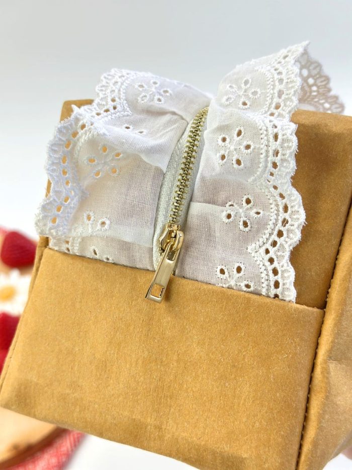 Túi mỹ phẩm giấy kraft bèo ren lót caro dâu