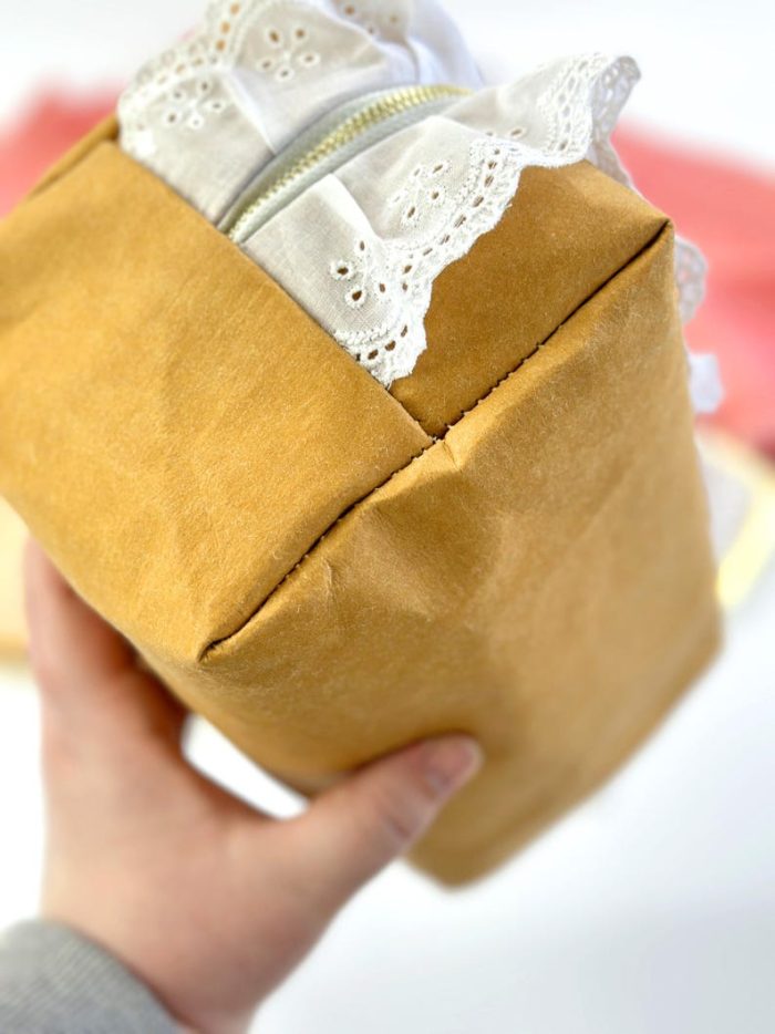 Chất liệu: vải giấy kraft, cotton, khóa kéo