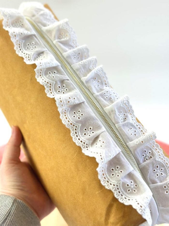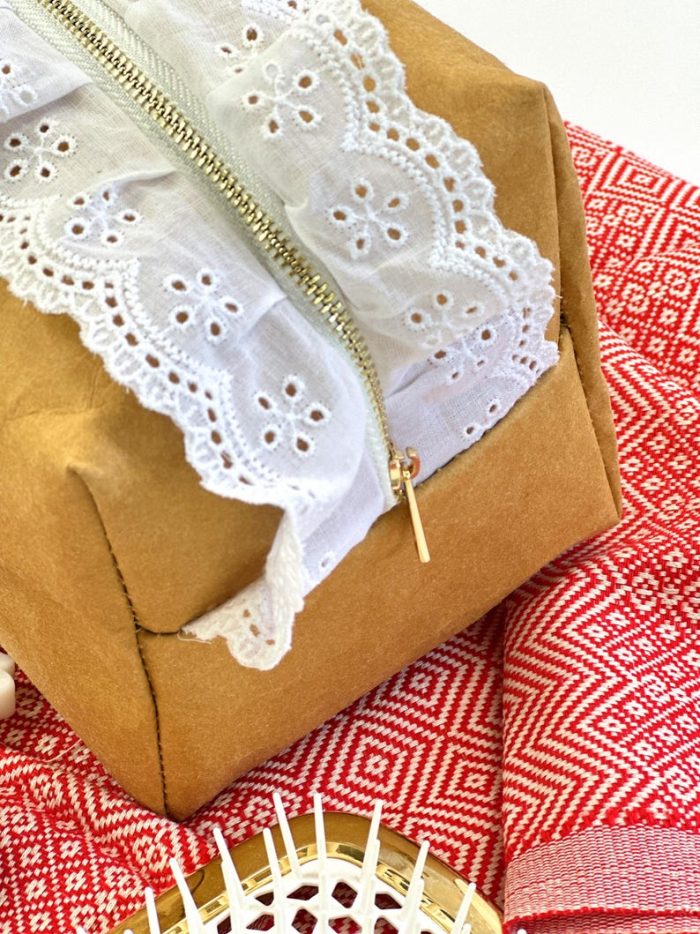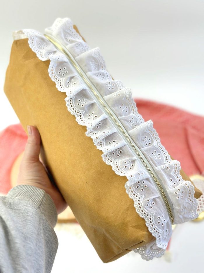 Home Bộ sưu tập Hot Túi mỹ phẩm giấy kraft bèo ren