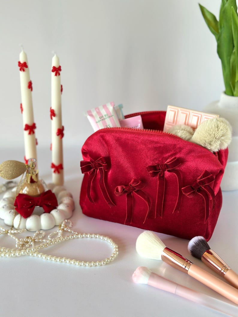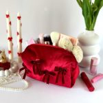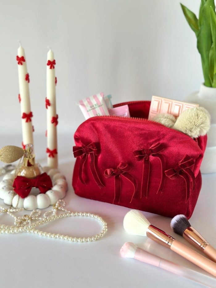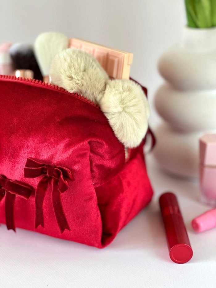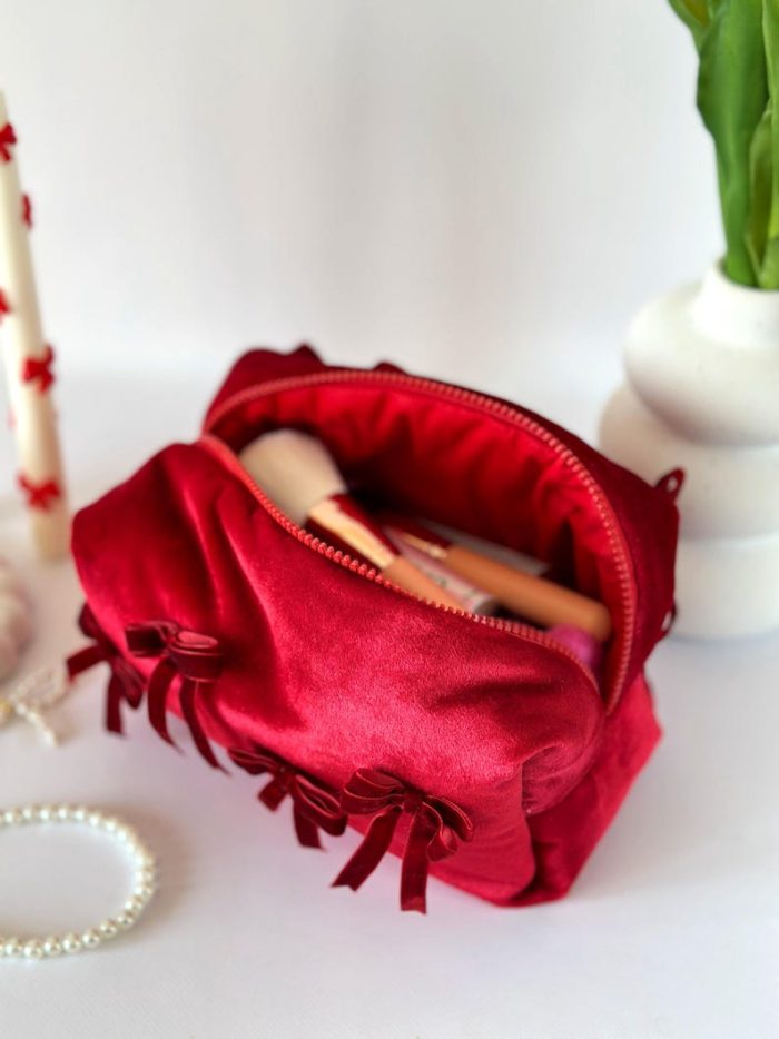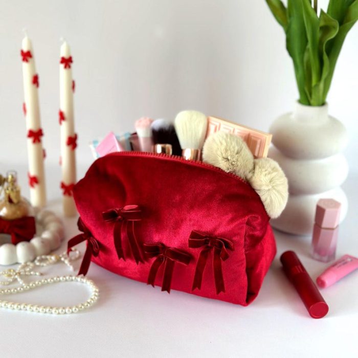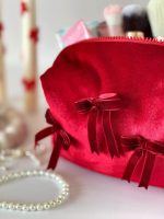 Home Bộ sưu tập Hot Túi mỹ phẩm nhung đỏ nơ trang trí