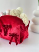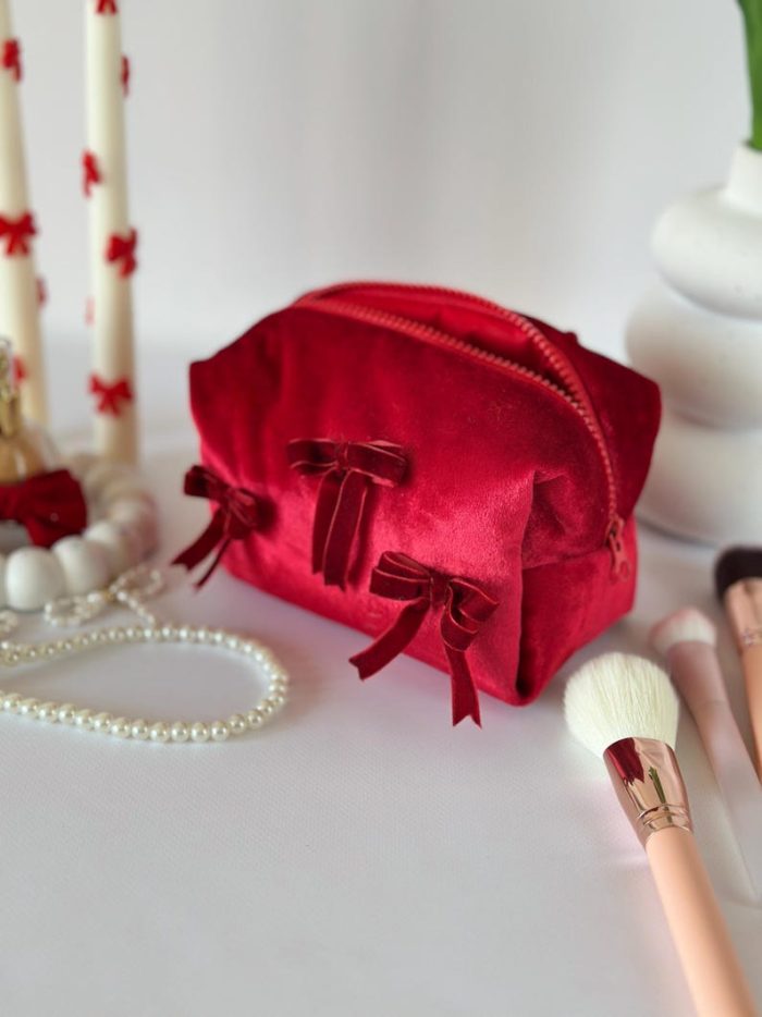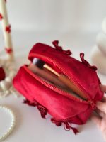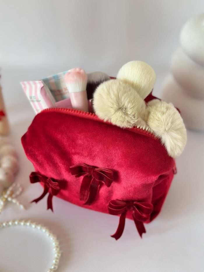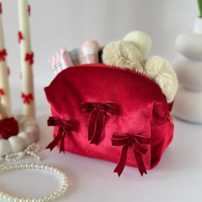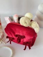 Home Bộ sưu tập Hot Túi mỹ phẩm nhung đỏ nơ