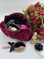 Home Bộ sưu tập Hot Túi mỹ phẩm nhung đỏ rượu nơ đen