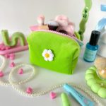 Home Bộ sưu tập Hot Túi mỹ phẩm nhung hoa cúc 3D xanh lá