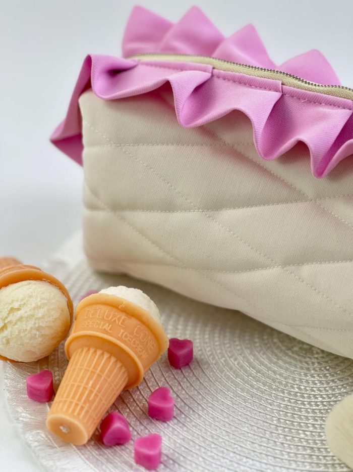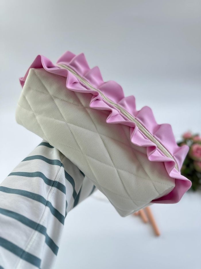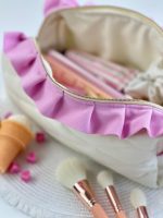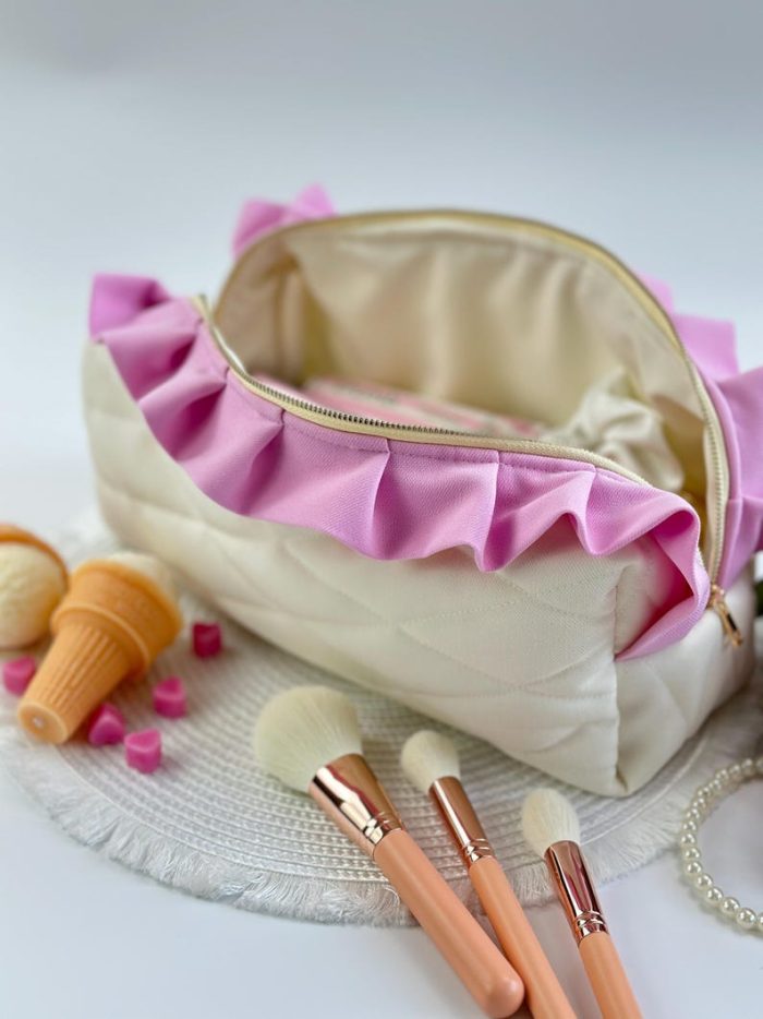 Túi mỹ phẩm cotton caro be trắng bèo nhún 660,000 ₫