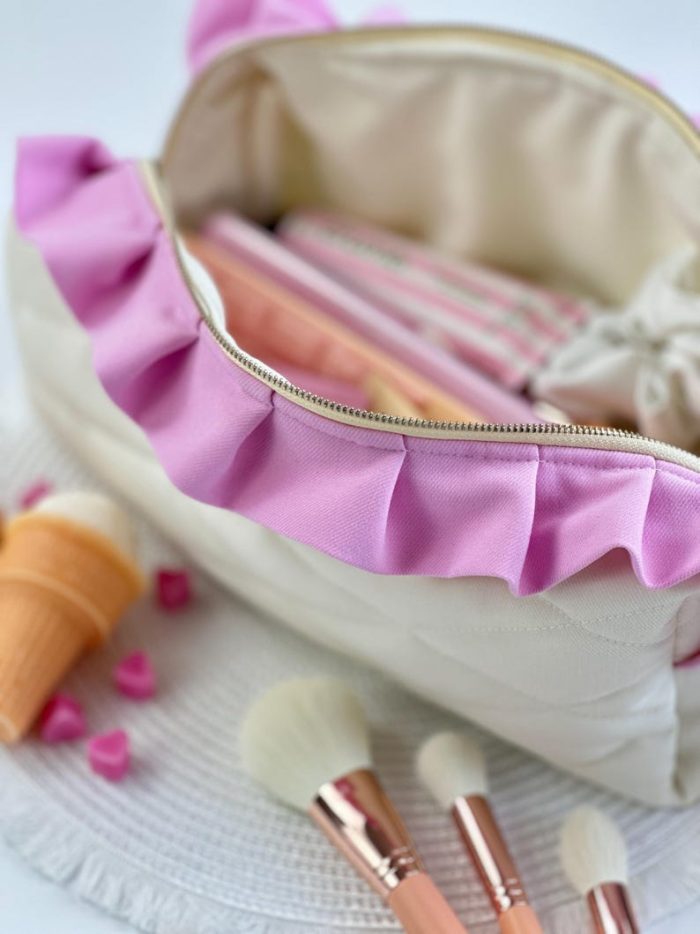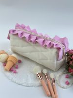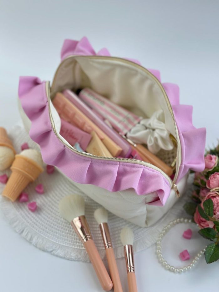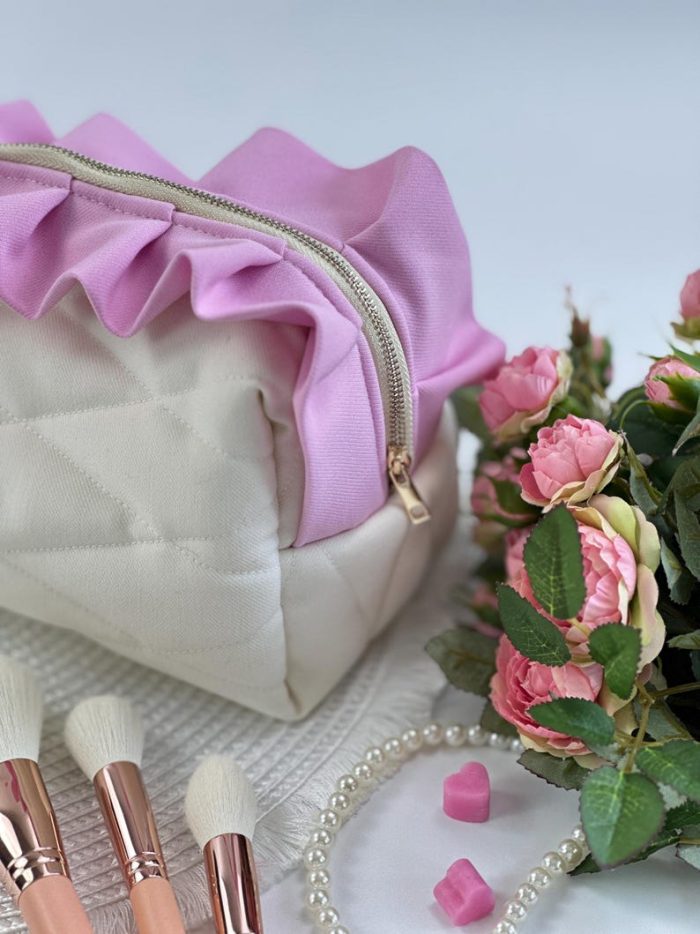 Home Túi mỹ phẩm Túi mỹ phẩm vải suiting bèo hồng